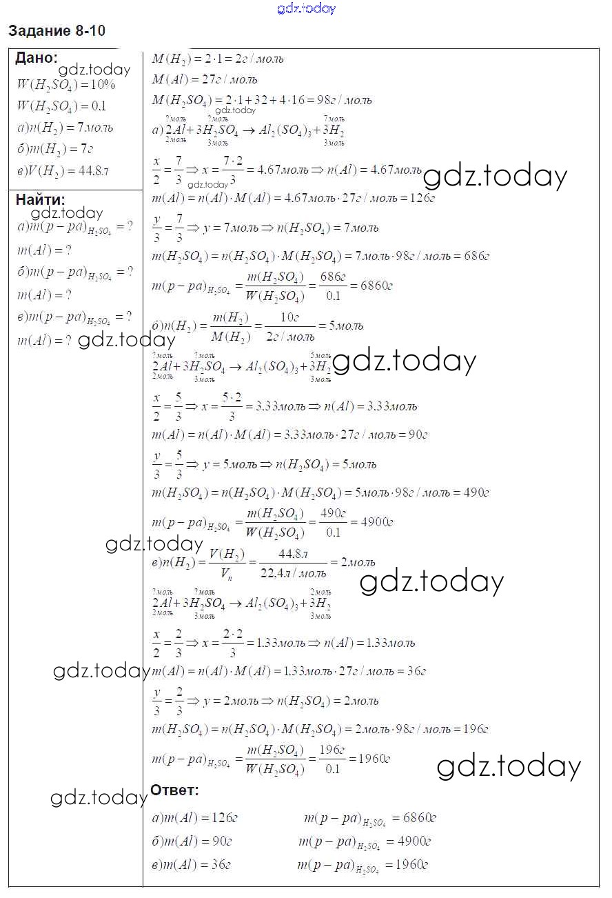 Ответы к Решение к главе 8 10 Задачнику по Химии для 8 класса Кузнецова, Левкин Вентана-граф Алгоритм успеха 2015