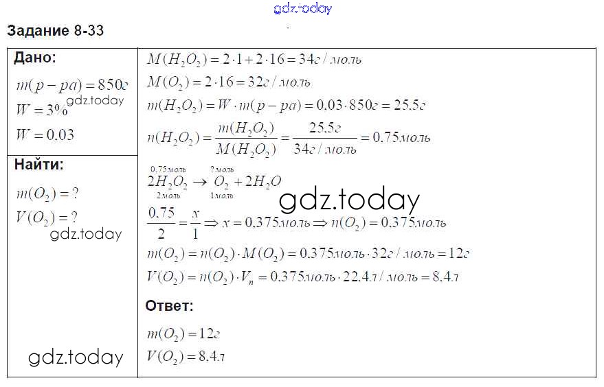 На страницах сайта gdz.today вы найдете учебный и вспомогательный материал, направленный на улучшения знаний школьной программы. ГДЗ - онлайн мир знаний Решение к главе 8 33 Задачнику по Химии для 8 класса Кузнецова, Левкин Вентана-граф Алгоритм успеха 2015