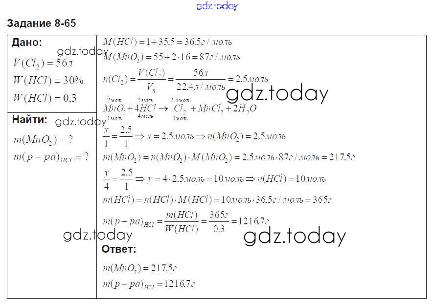 На страницах сайта gdz.today вы найдете учебный и вспомогательный материал, направленный на улучшения знаний школьной программы. ГДЗ - онлайн мир знаний Решение к главе 8 65 Задачнику по Химии для 8 класса Кузнецова, Левкин Вентана-граф Алгоритм успеха 2015