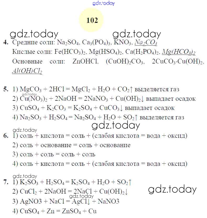 На страницах сайта gdz.today вы найдете учебный и вспомогательный материал, направленный на улучшения знаний школьной программы. ГДЗ - онлайн мир знаний Страницы (решение) 102 Рабочей тетради по Химии для 8 класса Микитюк Экзамен УМК 2015