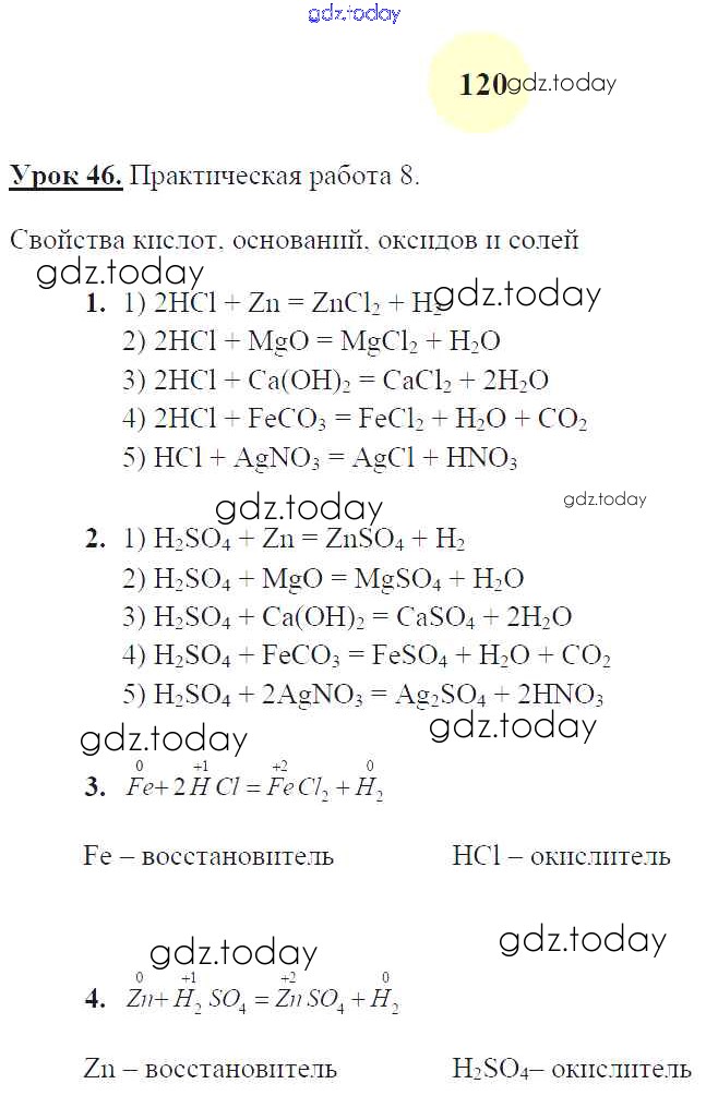 На страницах сайта gdz.today вы найдете учебный и вспомогательный материал, направленный на улучшения знаний школьной программы. ГДЗ - онлайн мир знаний Страницы (решение) 120 Рабочей тетради по Химии для 8 класса Микитюк Экзамен УМК 2015