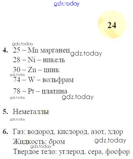 На страницах сайта gdz.today вы найдете учебный и вспомогательный материал, направленный на улучшения знаний школьной программы. ГДЗ - онлайн мир знаний Страницы (решение) 24 Рабочей тетради по Химии для 8 класса Микитюк Экзамен УМК 2015