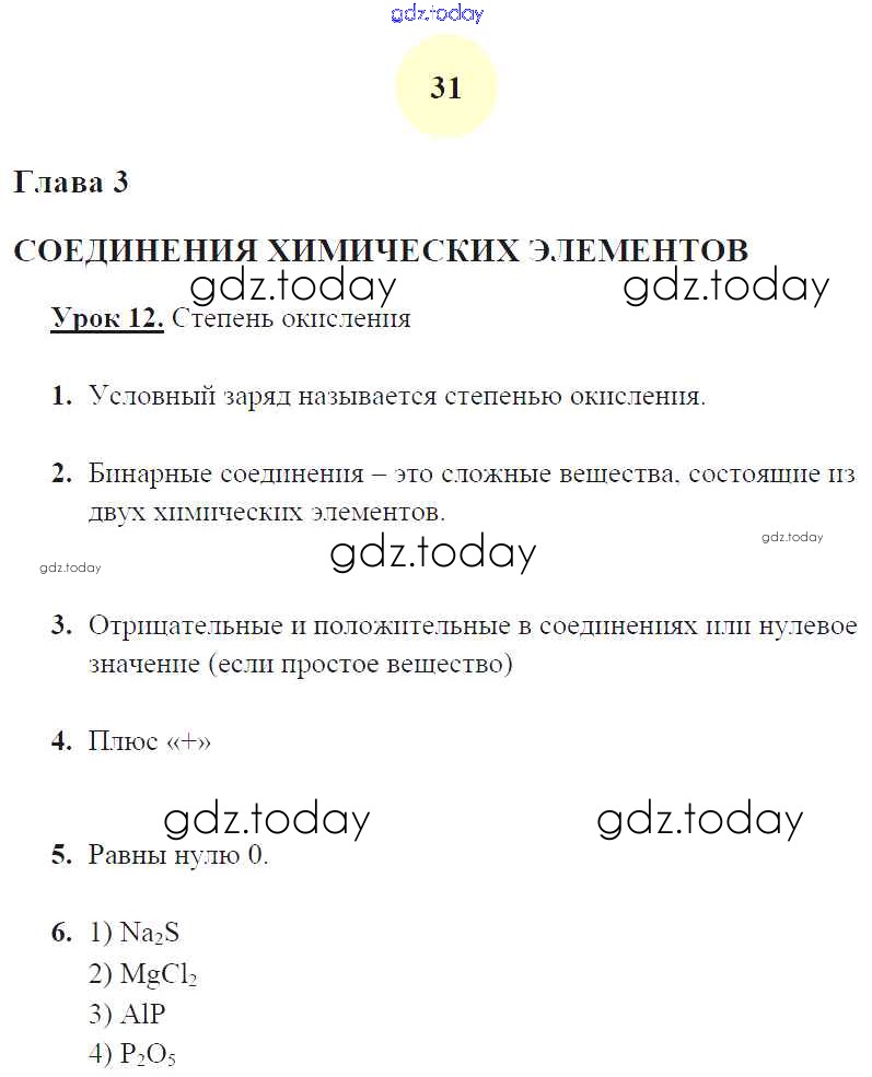 На страницах сайта gdz.today вы найдете учебный и вспомогательный материал, направленный на улучшения знаний школьной программы. ГДЗ - онлайн мир знаний Страницы (решение) 31 Рабочей тетради по Химии для 8 класса Микитюк Экзамен УМК 2015
