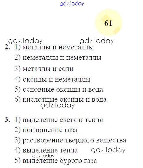 На страницах сайта gdz.today вы найдете учебный и вспомогательный материал, направленный на улучшения знаний школьной программы. ГДЗ - онлайн мир знаний Страницы (решение) 61 Рабочей тетради по Химии для 8 класса Микитюк Экзамен УМК 2015