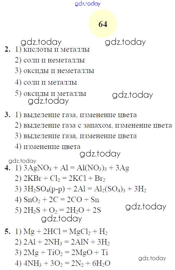 На страницах сайта gdz.today вы найдете учебный и вспомогательный материал, направленный на улучшения знаний школьной программы. ГДЗ - онлайн мир знаний Страницы (решение) 64 Рабочей тетради по Химии для 8 класса Микитюк Экзамен УМК 2015