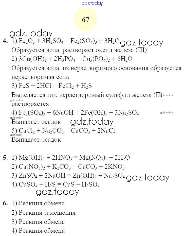 На страницах сайта gdz.today вы найдете учебный и вспомогательный материал, направленный на улучшения знаний школьной программы. ГДЗ - онлайн мир знаний Страницы (решение) 67 Рабочей тетради по Химии для 8 класса Микитюк Экзамен УМК 2015