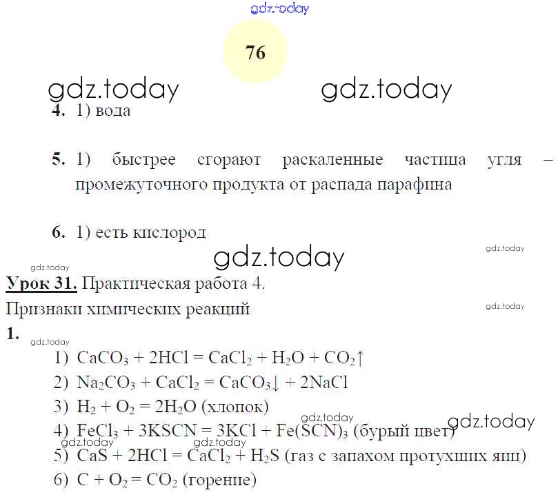 На страницах сайта gdz.today вы найдете учебный и вспомогательный материал, направленный на улучшения знаний школьной программы. ГДЗ - онлайн мир знаний Страницы (решение) 76 Рабочей тетради по Химии для 8 класса Микитюк Экзамен УМК 2015