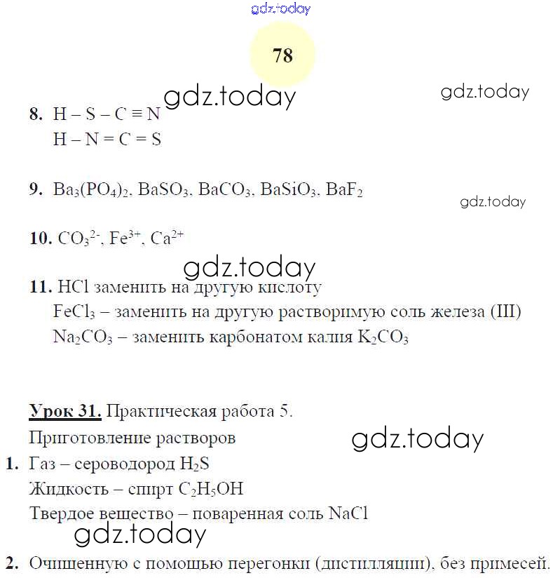На страницах сайта gdz.today вы найдете учебный и вспомогательный материал, направленный на улучшения знаний школьной программы. ГДЗ - онлайн мир знаний Страницы (решение) 78 Рабочей тетради по Химии для 8 класса Микитюк Экзамен УМК 2015