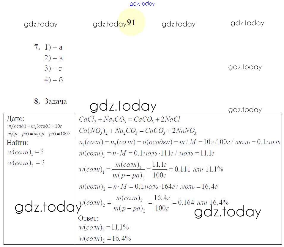 Ответы к Страницы (решение) 91 Рабочей тетради по Химии для 8 класса Микитюк Экзамен УМК 2015