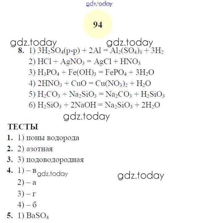 Ответы к Страницы (решение) 94 Рабочей тетради по Химии для 8 класса Микитюк Экзамен УМК 2015