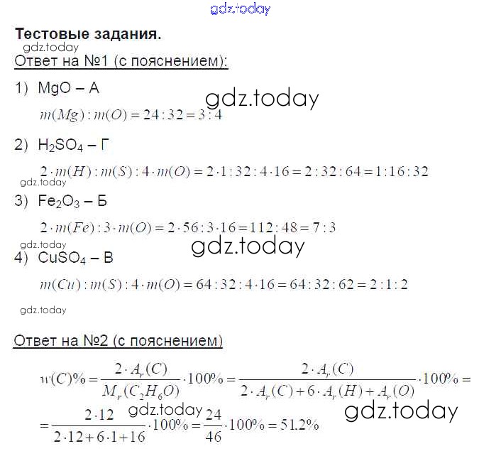 Ответы к Тестовые задания. Параграфы Решение к новому изданию 15 Учебнику по Химии для 8 класса Рудзитис, Фельдман Просвещение УМК 2016