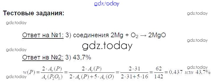 Ответы к Тестовые задания. Параграфы Решение к новому изданию 24 Учебнику по Химии для 8 класса Рудзитис, Фельдман Просвещение УМК 2016