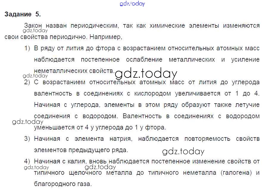На страницах сайта gdz.today вы найдете учебный и вспомогательный материал, направленный на улучшения знаний школьной программы. ГДЗ - онлайн мир знаний § 34-35 Глава VI. Периодический закон и периодическая система химических элементов Д.И. Менделеева. Строение атома 5 Учебнику по Химии для 8 класса Рудзитис, Фельдман Просвещение УМК 2016