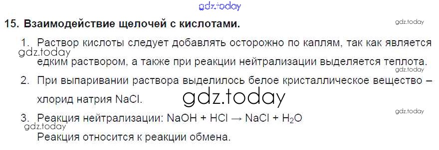 На страницах сайта gdz.today вы найдете учебный и вспомогательный материал, направленный на улучшения знаний школьной программы. ГДЗ - онлайн мир знаний Лабораторные опыты Решение к старому изданию 15 Учебнику по Химии для 8 класса Рудзитис, Фельдман Просвещение УМК 2016