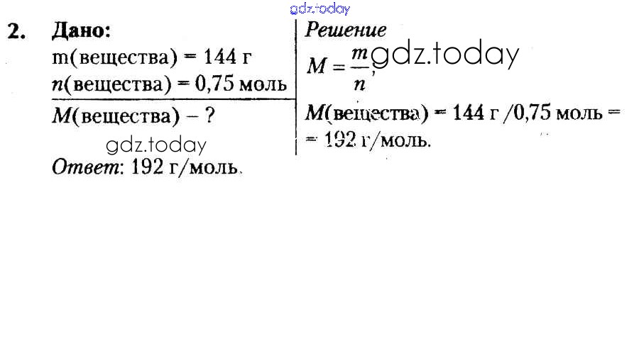 Ответы к Решение к §5. Молярная масса. Молярный объем газов 2 Учебнику по Химии для 8 класса Шиманович, Красицкий Народная асвета 2018