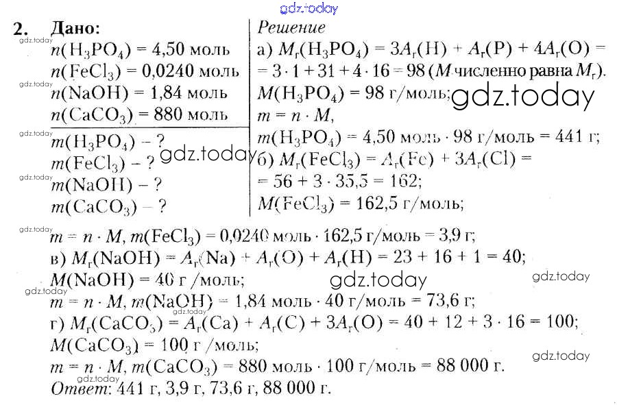 Решение к §6. Вычисление химического количества вещества по его массе и массы вещества по его химическому количеству