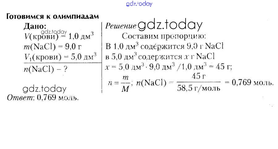 Ответы к Решение к §6. Вычисление химического количества вещества по его массе и массы вещества по его химическому количеству Готовимся к олимпиадам Учебнику по Химии для 8 класса Шиманович, Красицкий Народная асвета 2018
