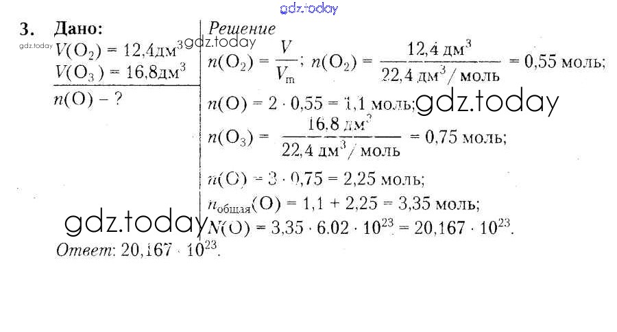 Ответы к Решение к §7. Вычисление химического количества газа по его объему и объема газа по его химическому количеству 3 Учебнику по Химии для 8 класса Шиманович, Красицкий Народная асвета 2018