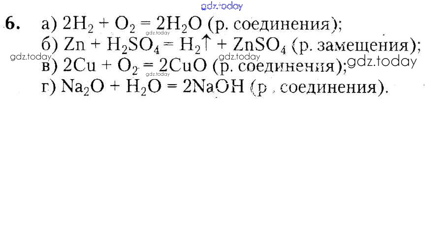 На страницах сайта gdz.today вы найдете учебный и вспомогательный материал, направленный на улучшения знаний школьной программы. ГДЗ - онлайн мир знаний Решение к §8. Химические реакции 6 Учебнику по Химии для 8 класса Шиманович, Красицкий Народная асвета 2018