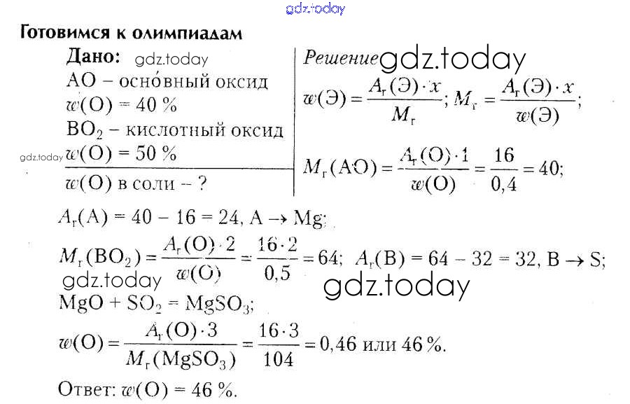 Ответы к Решение к §11. Химические свойства оксидов Готовимся к олимпиадам Учебнику по Химии для 8 класса Шиманович, Красицкий Народная асвета 2018