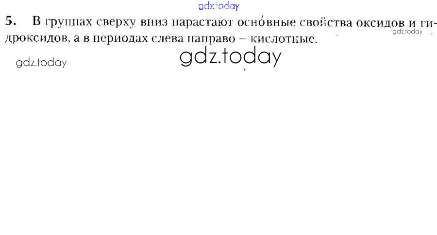 На страницах сайта gdz.today вы найдете учебный и вспомогательный материал, направленный на улучшения знаний школьной программы. ГДЗ - онлайн мир знаний Решение к §34. Периодичность изменения свойств атомов химических элементов 5 Учебнику по Химии для 8 класса Шиманович, Красицкий Народная асвета 2018