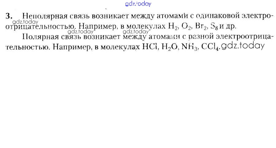 На страницах сайта gdz.today вы найдете учебный и вспомогательный материал, направленный на улучшения знаний школьной программы. ГДЗ - онлайн мир знаний Решение к §38. Неполярная и полярная ковалентная связь. Электроотрицательность 3 Учебнику по Химии для 8 класса Шиманович, Красицкий Народная асвета 2018