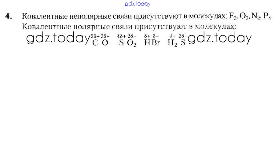 На страницах сайта gdz.today вы найдете учебный и вспомогательный материал, направленный на улучшения знаний школьной программы. ГДЗ - онлайн мир знаний Решение к §38. Неполярная и полярная ковалентная связь. Электроотрицательность 4 Учебнику по Химии для 8 класса Шиманович, Красицкий Народная асвета 2018