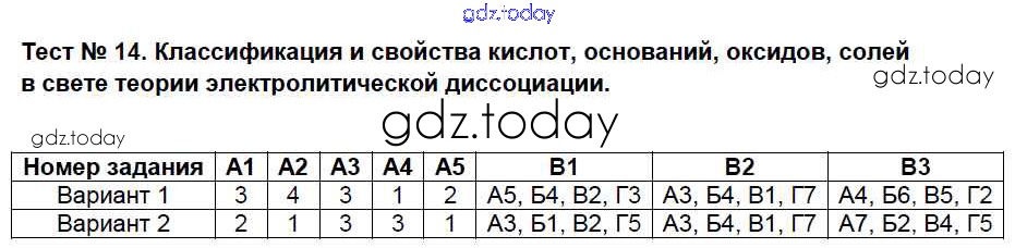 На страницах сайта gdz.today вы найдете учебный и вспомогательный материал, направленный на улучшения знаний школьной программы. ГДЗ - онлайн мир знаний Решение к тестам 14 Контрольно-измерительным материалам (КИМ) по Химии для 8 класса Троегубова, Стрельникова ВАКО 2018