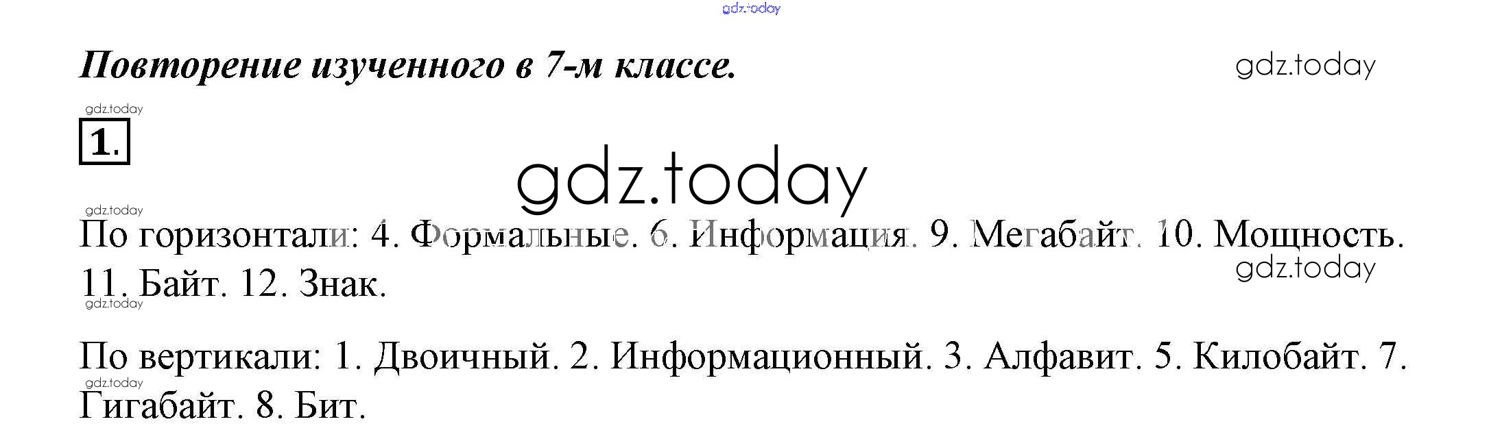 На страницах сайта gdz.today вы найдете учебный и вспомогательный материал, направленный на улучшения знаний школьной программы. ГДЗ - онлайн мир знаний Решение к заданиям  1 Рабочей тетради по Информатике для 8 класса Босова  Бином  2017