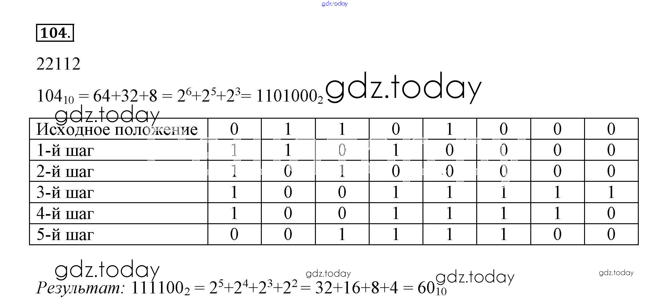 Ответы к Решение к заданиям  104 Рабочей тетради по Информатике для 8 класса Босова  Бином  2017