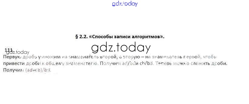 На страницах сайта gdz.today вы найдете учебный и вспомогательный материал, направленный на улучшения знаний школьной программы. ГДЗ - онлайн мир знаний Решение к заданиям  111 Рабочей тетради по Информатике для 8 класса Босова  Бином  2017