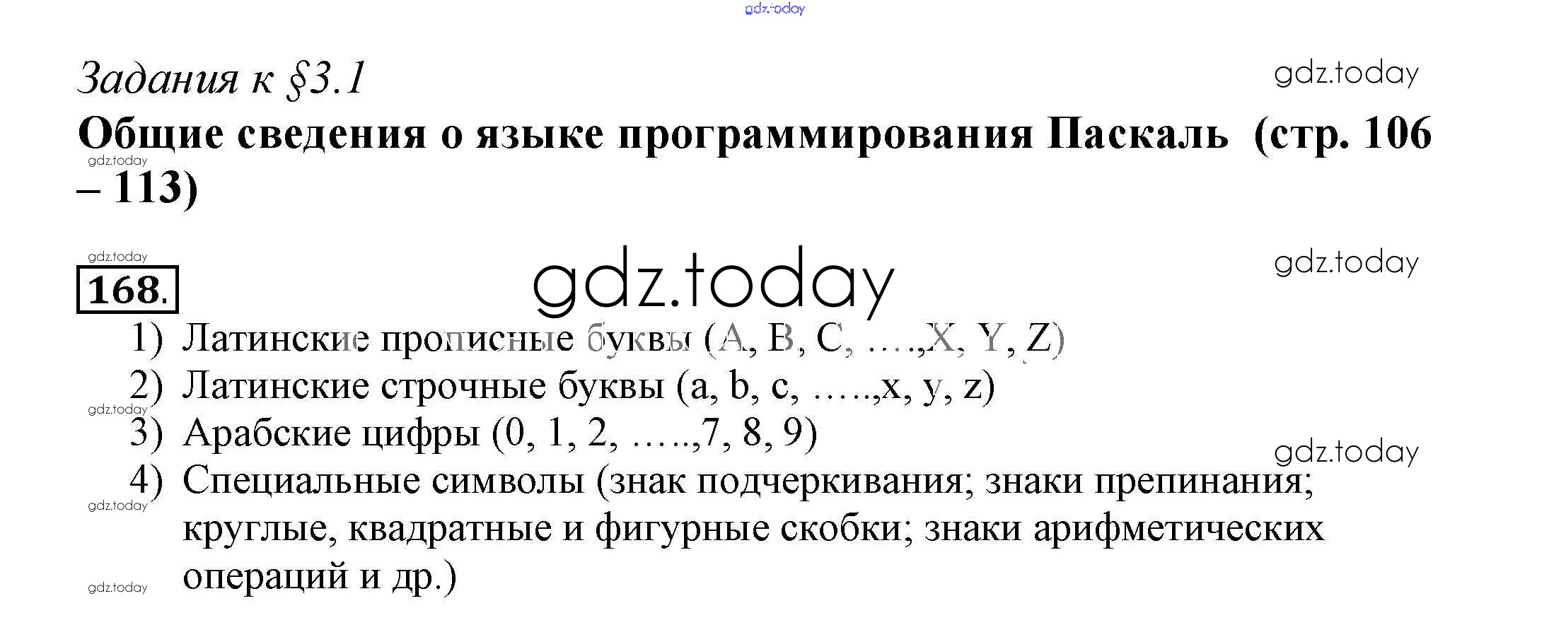 Ответы к Решение к заданиям  168 Рабочей тетради по Информатике для 8 класса Босова  Бином  2017