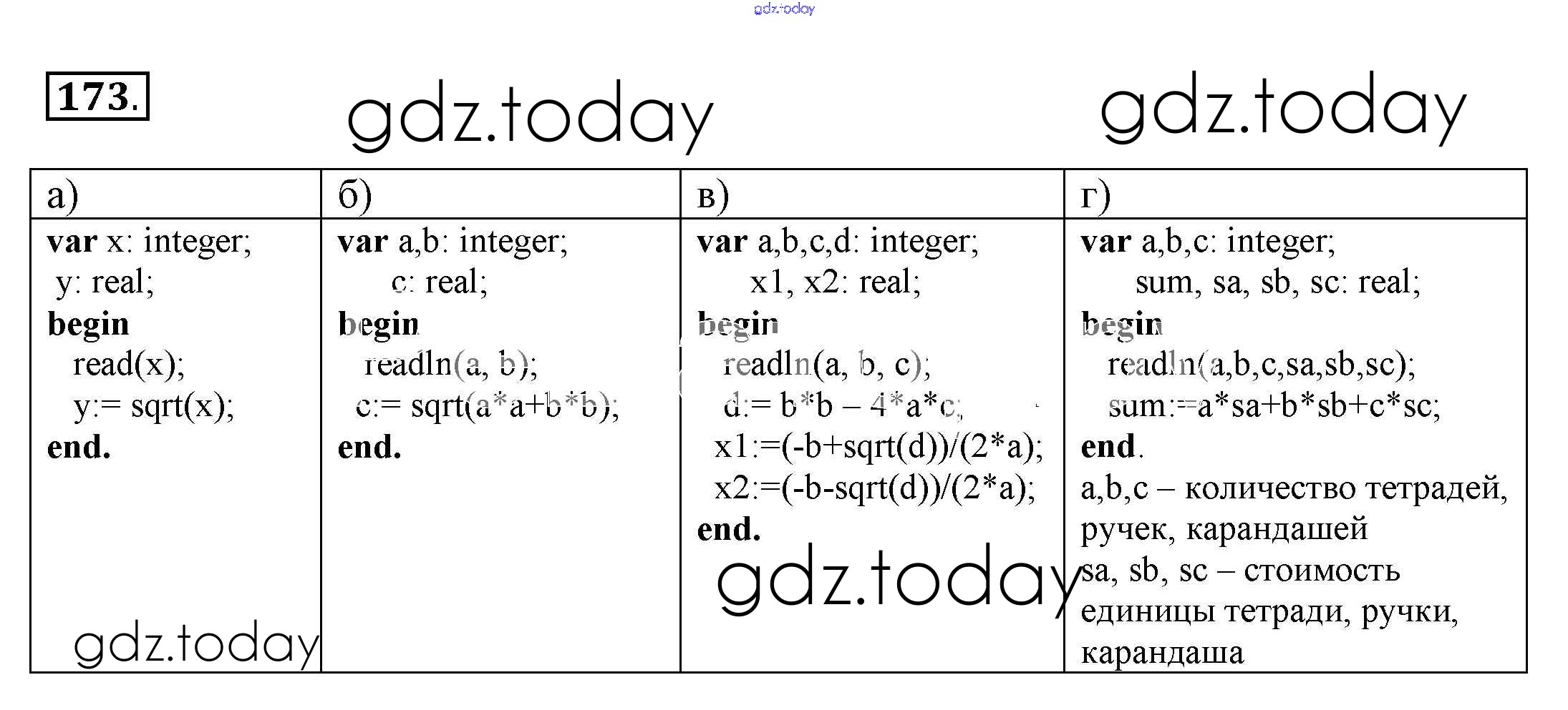 Ответы к Решение к заданиям  173 Рабочей тетради по Информатике для 8 класса Босова  Бином  2017