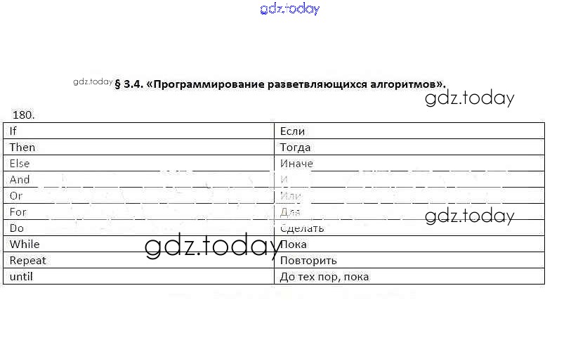 На страницах сайта gdz.today вы найдете учебный и вспомогательный материал, направленный на улучшения знаний школьной программы. ГДЗ - онлайн мир знаний Решение к заданиям  180 Рабочей тетради по Информатике для 8 класса Босова  Бином  2017