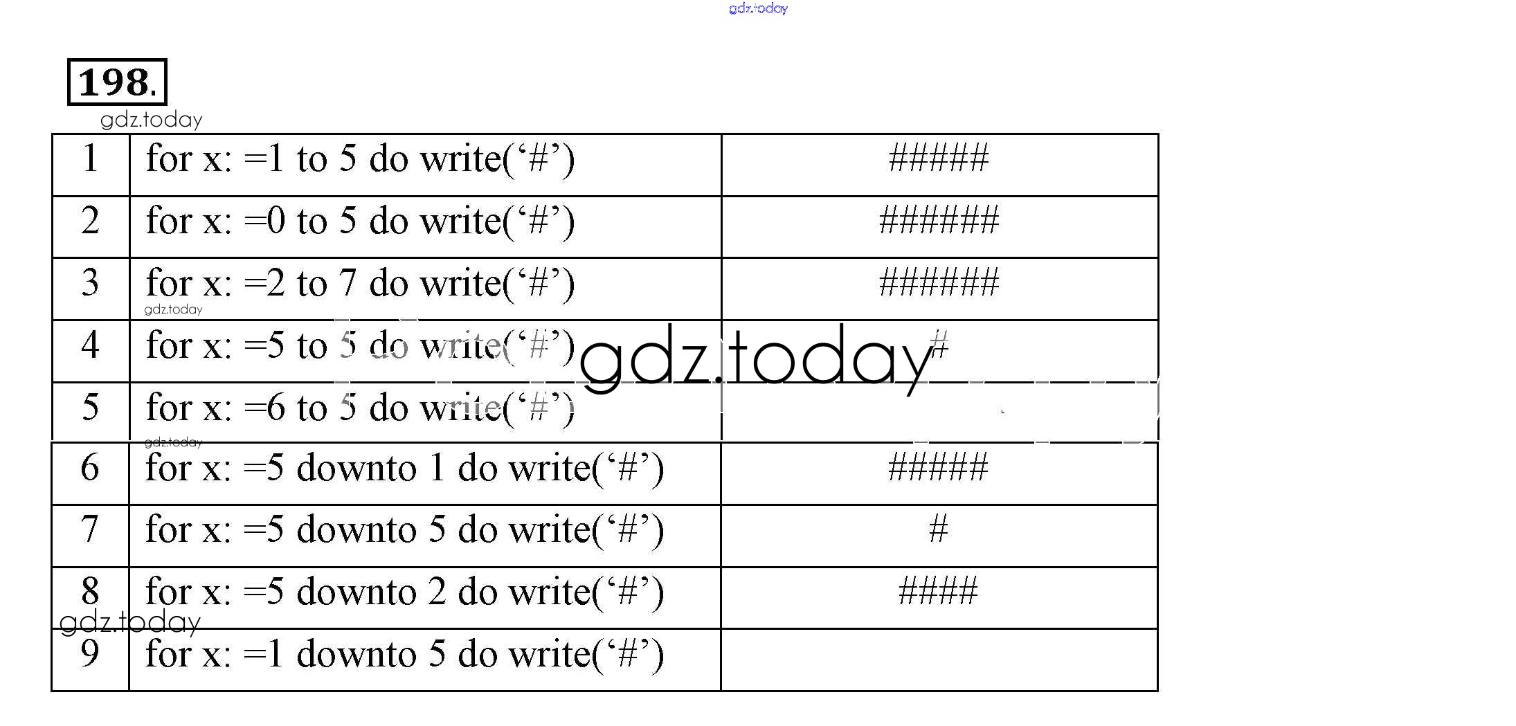 На страницах сайта gdz.today вы найдете учебный и вспомогательный материал, направленный на улучшения знаний школьной программы. ГДЗ - онлайн мир знаний Решение к заданиям  198 Рабочей тетради по Информатике для 8 класса Босова  Бином  2017
