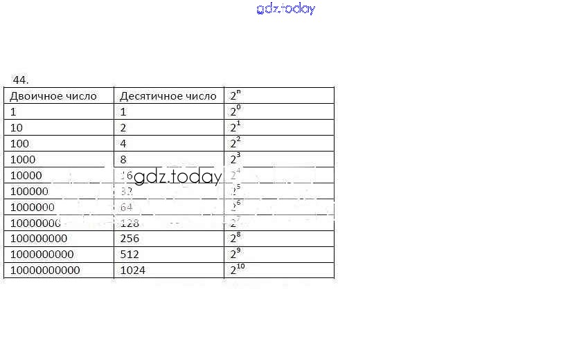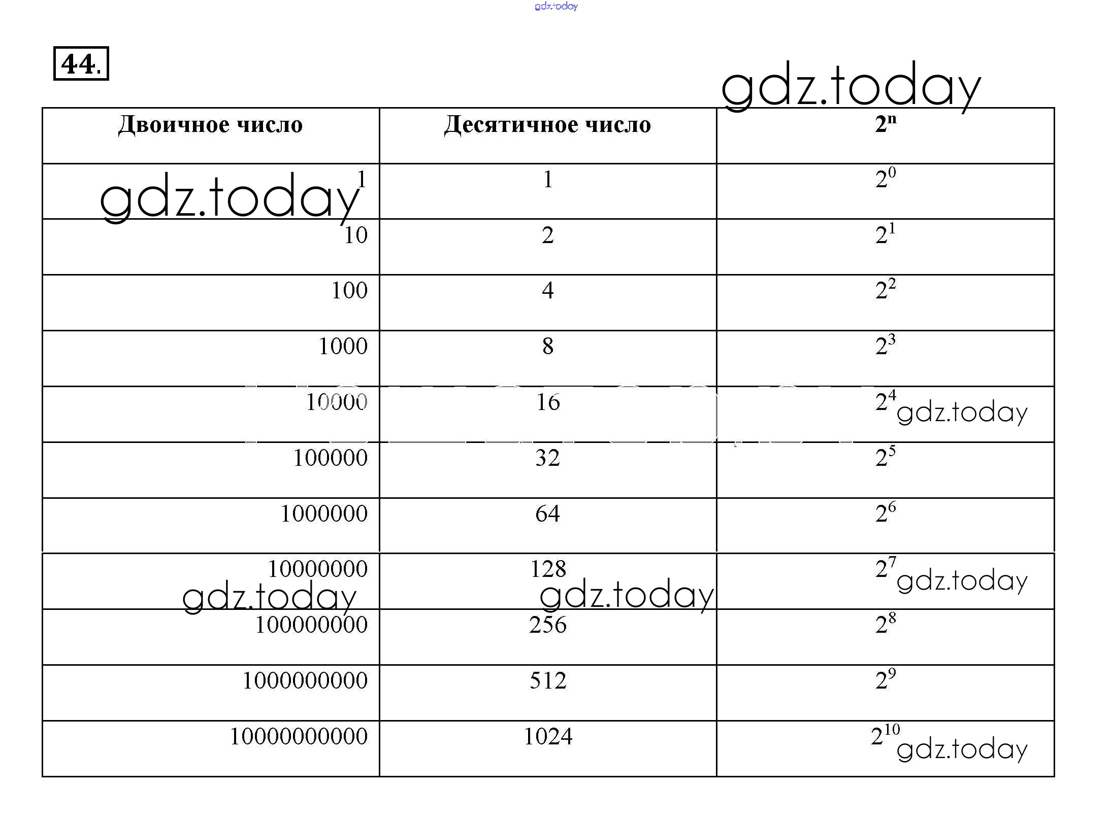 На страницах сайта gdz.today вы найдете учебный и вспомогательный материал, направленный на улучшения знаний школьной программы. ГДЗ - онлайн мир знаний Решение к заданиям  44 Рабочей тетради по Информатике для 8 класса Босова  Бином  2017