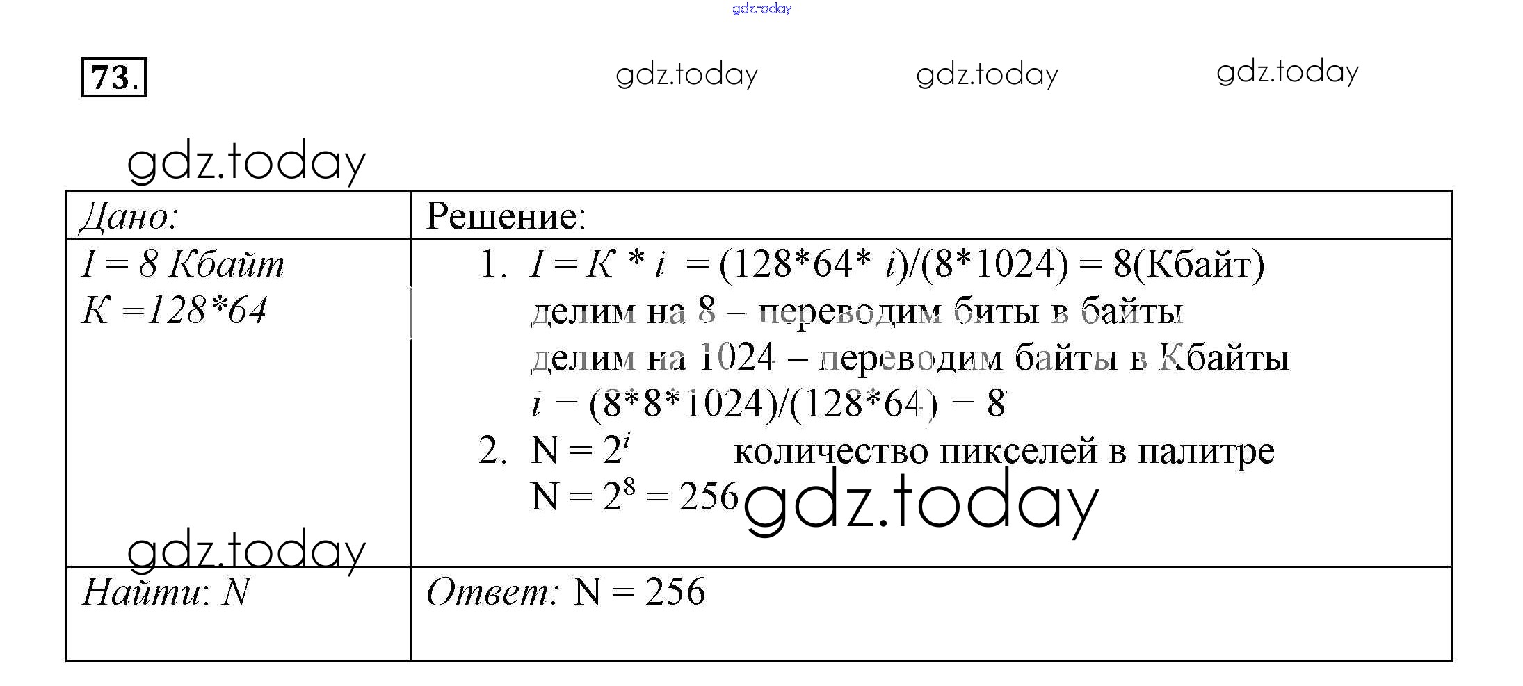 Ответы к Решение к заданиям  73 Рабочей тетради по Информатике для 8 класса Босова  Бином  2017