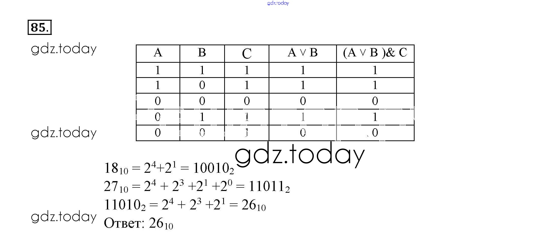 Ответы к Решение к заданиям  85 Рабочей тетради по Информатике для 8 класса Босова  Бином  2017
