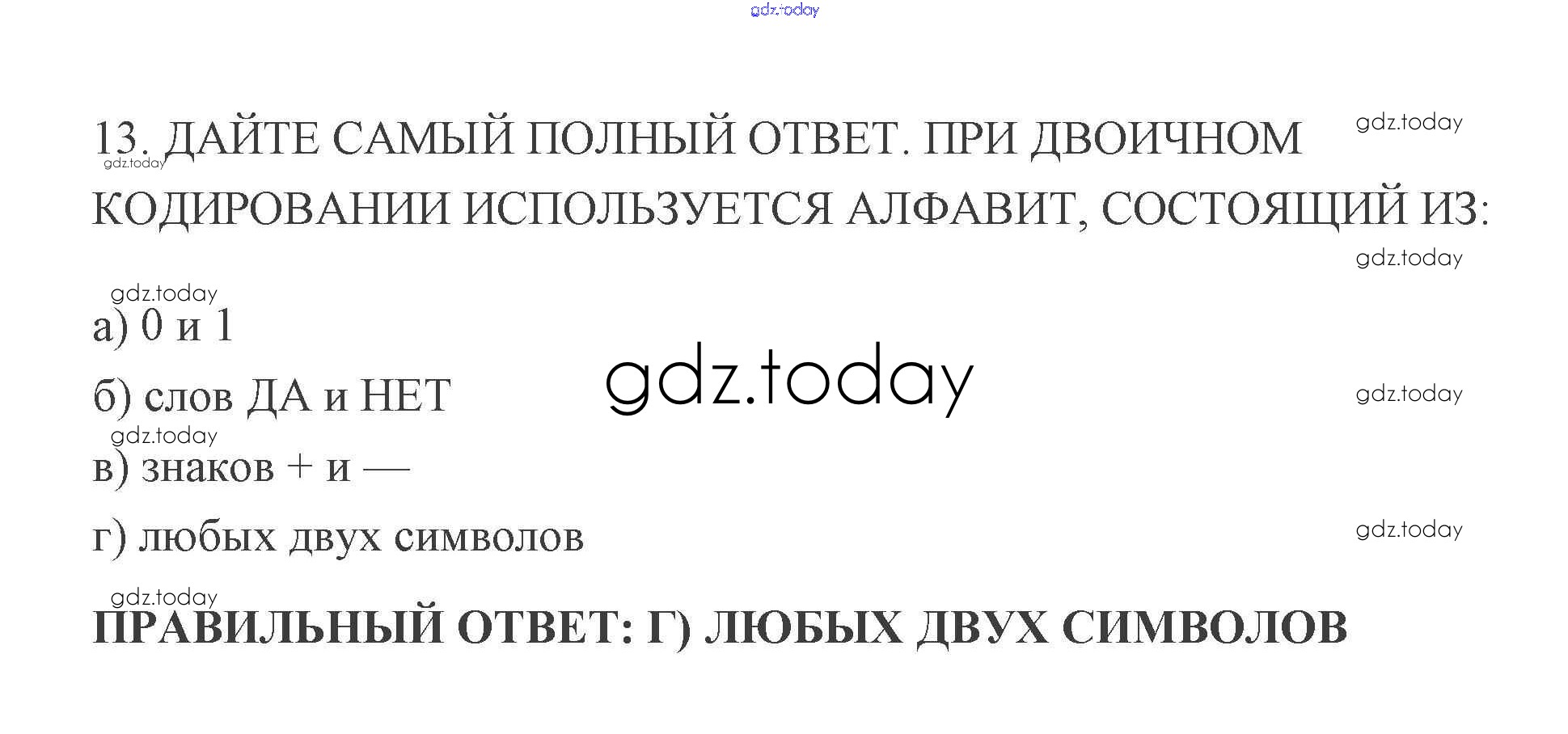 На страницах сайта gdz.today вы найдете учебный и вспомогательный материал, направленный на улучшения знаний школьной программы. ГДЗ - онлайн мир знаний Решение к главе 1. Информация и информационные процессы  13 Учебнику по Информатике для 8 класса Босова  Бином  2017