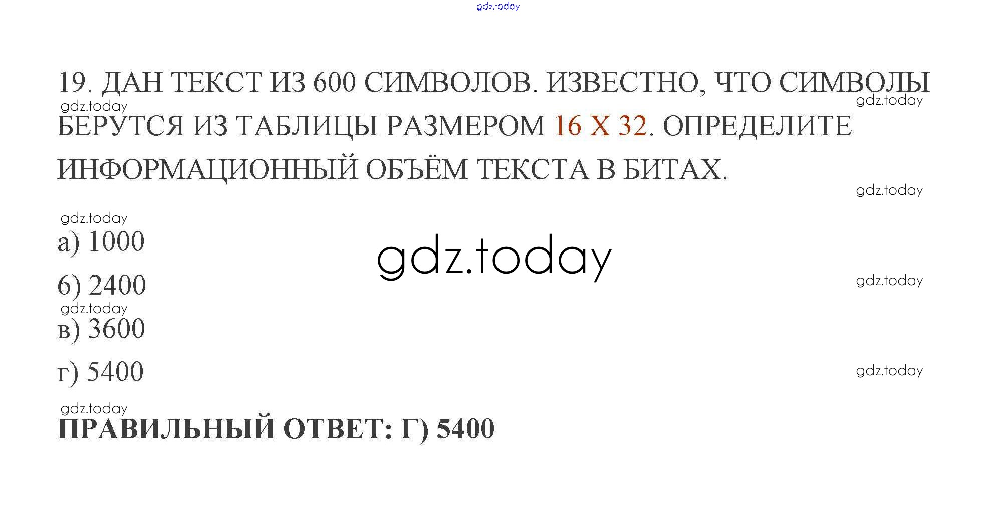 На страницах сайта gdz.today вы найдете учебный и вспомогательный материал, направленный на улучшения знаний школьной программы. ГДЗ - онлайн мир знаний Решение к главе 1. Информация и информационные процессы  19 Учебнику по Информатике для 8 класса Босова  Бином  2017
