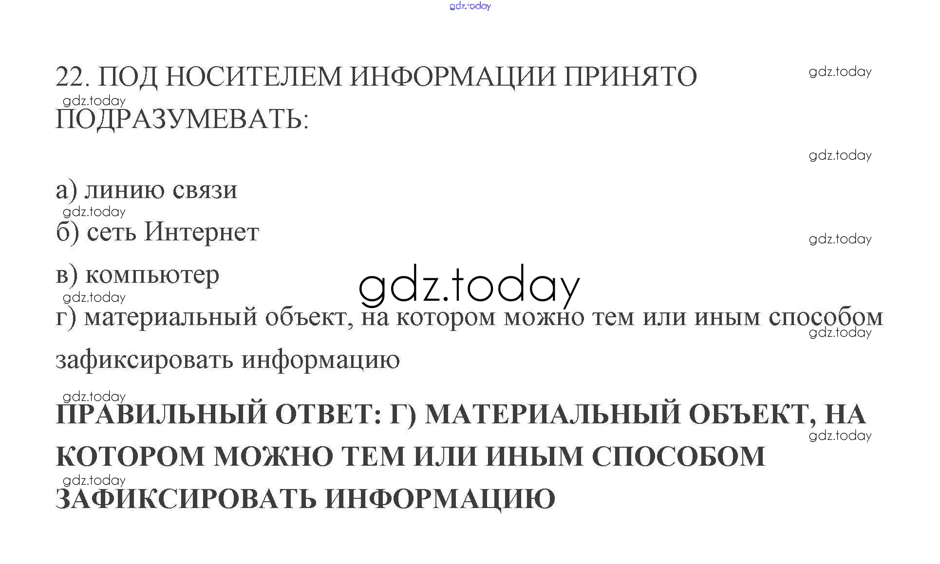 На страницах сайта gdz.today вы найдете учебный и вспомогательный материал, направленный на улучшения знаний школьной программы. ГДЗ - онлайн мир знаний Решение к главе 1. Информация и информационные процессы  22 Учебнику по Информатике для 8 класса Босова  Бином  2017