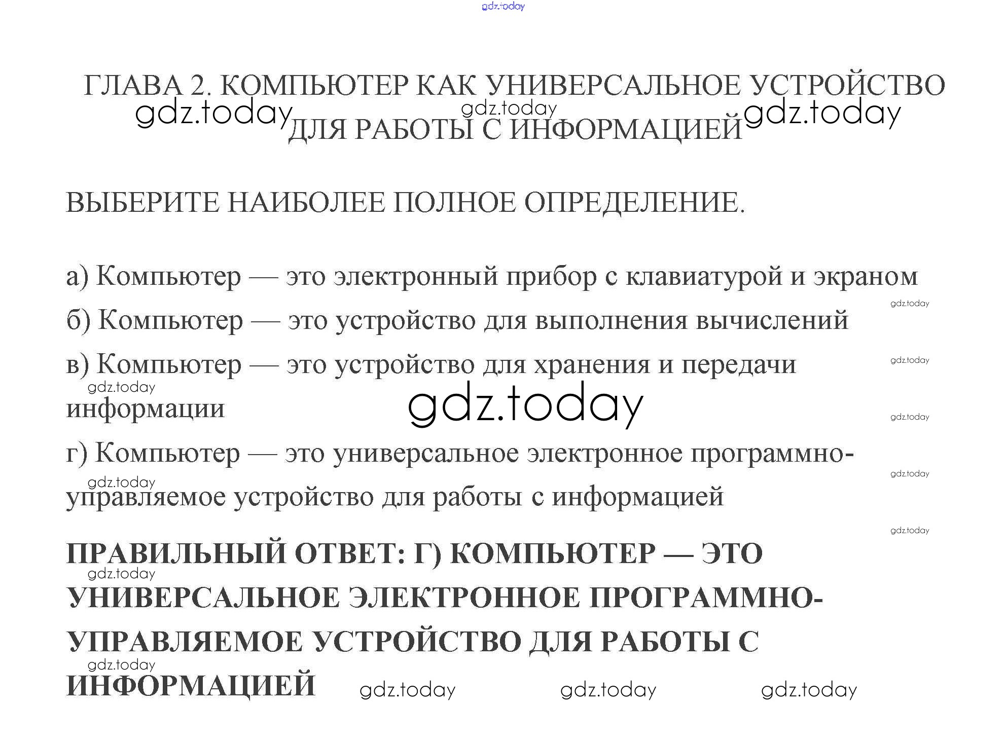 На страницах сайта gdz.today вы найдете учебный и вспомогательный материал, направленный на улучшения знаний школьной программы. ГДЗ - онлайн мир знаний Решение к главе 2. Компьютер как универсальное устройство для работы с информацией  1 Учебнику по Информатике для 8 класса Босова  Бином  2017