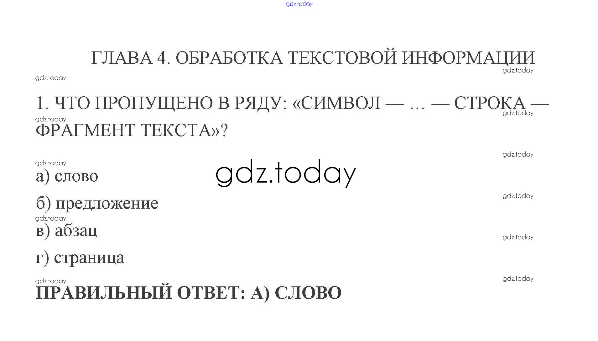 На страницах сайта gdz.today вы найдете учебный и вспомогательный материал, направленный на улучшения знаний школьной программы. ГДЗ - онлайн мир знаний Решение к главе 4. Обработка текстовой информации  1 Учебнику по Информатике для 8 класса Босова  Бином  2017