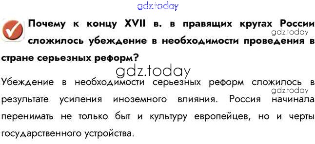 На страницах сайта gdz.today вы найдете учебный и вспомогательный материал, направленный на улучшения знаний школьной программы. ГДЗ - онлайн мир знаний Вопросы в начале параграфа §2 1 Учебнику по Истории России для 8 класса Арсентьев, Курукин Просвещение 2016