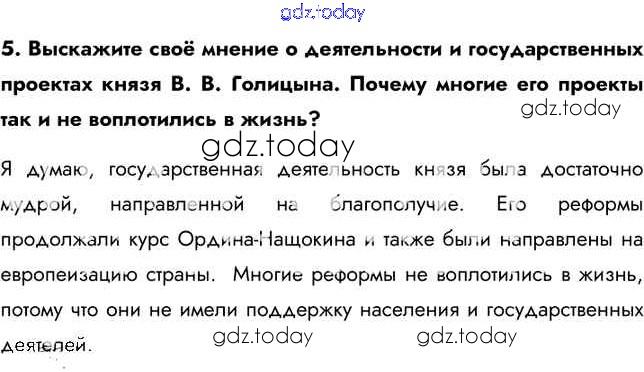 На страницах сайта gdz.today вы найдете учебный и вспомогательный материал, направленный на улучшения знаний школьной программы. ГДЗ - онлайн мир знаний Вопросы и задания §2 5 Учебнику по Истории России для 8 класса Арсентьев, Курукин Просвещение 2016
