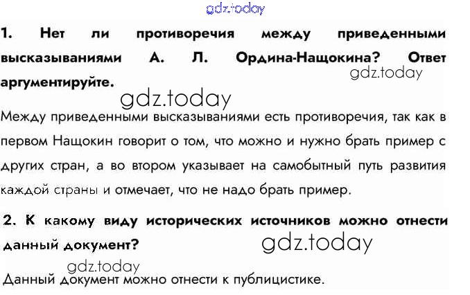 На страницах сайта gdz.today вы найдете учебный и вспомогательный материал, направленный на улучшения знаний школьной программы. ГДЗ - онлайн мир знаний Изучаем документ §2 стр.18 Учебнику по Истории России для 8 класса Арсентьев, Курукин Просвещение 2016