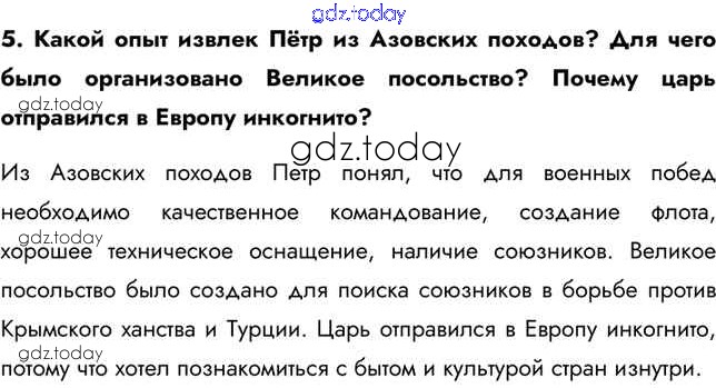 На страницах сайта gdz.today вы найдете учебный и вспомогательный материал, направленный на улучшения знаний школьной программы. ГДЗ - онлайн мир знаний Вопросы и задания §3 5 Учебнику по Истории России для 8 класса Арсентьев, Курукин Просвещение 2016