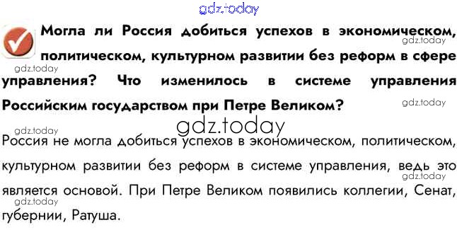 На страницах сайта gdz.today вы найдете учебный и вспомогательный материал, направленный на улучшения знаний школьной программы. ГДЗ - онлайн мир знаний Вопросы в начале параграфа §5 1 Учебнику по Истории России для 8 класса Арсентьев, Курукин Просвещение 2016