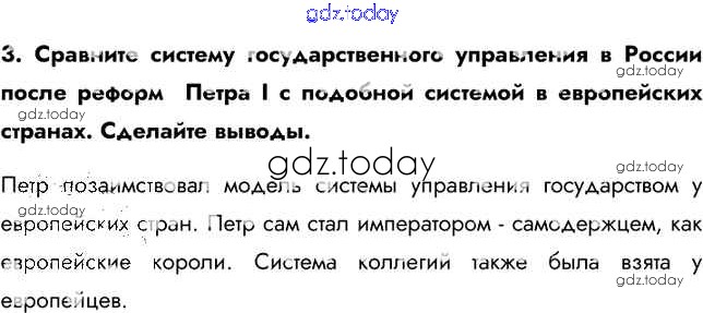 На страницах сайта gdz.today вы найдете учебный и вспомогательный материал, направленный на улучшения знаний школьной программы. ГДЗ - онлайн мир знаний Думаем, сравниваем, размышляем §5 3 Учебнику по Истории России для 8 класса Арсентьев, Курукин Просвещение 2016