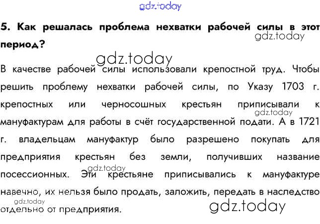 На страницах сайта gdz.today вы найдете учебный и вспомогательный материал, направленный на улучшения знаний школьной программы. ГДЗ - онлайн мир знаний Вопросы и задания §6 5 Учебнику по Истории России для 8 класса Арсентьев, Курукин Просвещение 2016